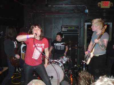 Calvin Johnson + Lois + The Maxines + D+ @ The Northern (downtown Olympia, WA). • Ce n'est pas souvent que l'entrée est fixée à plus de 5 dollars au Northern. Habituellement destinées à faire fonctionner le lieu, les recettes de ce soir serviront à aider, bien que modestement, les victimes du tremblement de terre japonais. • Calvin Johnson est le premier à monter sur scène, seul, avec une guitare folk. Il est une figure incontournable d'Olympia. Tout le monde le connaît plus ou moins. Au-delà de son histoire avec Beat Happening dans les années 80 et 90, il a enregistré et sorti (avec son label, K records) des dizaines d'excellents disques de groupes de la région, des années 90 jusqu'aujourd'hui. Ce qu'il fait ce soir est toujours aussi proche de Beat Happening, c'est-à-dire simple et bancal, anecdotique et poétique, primitif et enfantin, humble et dépouillé, au point de faire quelques morceaux totalement a cappella. Avoir l'occasion d'entendre en live le timbre de voix si particulier de Calvin Johnson est un vrai plaisir. • Lois (Maffeo) est une autre figure emblématique d'Olympia. Elle a de nombreuses fois croisé la route de Fugazi durant les années 90. Ce soir elle dit ne jouer que les morceaux dont elle se souvient, soit trois très beaux titres, interprétés seule, avec une guitare folk. Entre les morceaux elle lit une ancienne lettre dans laquelle Calvin Johnson lui parlait de la tournée japonaise de Beat Happening (en 1983, le groupe venait tout juste de démarrer!), ainsi que des extraits de notes personnelles, écrites lors d'une tournée au Japon. • The Maxines est un duo rock'n'roll avec une batteuse et un guitariste. Tout simplement excellent!!! On sent qu'ils s'amusent comme des gamins et ça envoie la purée sans aucune pose de rocker gominé à deux balles. • D+ est un groupe d'Anacortes composé de Bret Lunsford (ancien membre de Beat Happening) à la guitare et au chant, Phil Elvrum (The Microphones, Mount Eerie) à la batterie et au chant, et Karl Blau, à la basse et au chant. D+ est très populaire à Olympia, bien que le groupe n'y ait pas joué depuis un bon moment. Les morceaux sont top, il y a beaucoup d'énergie et leur plaisir est communicatif. Le son, à la fois sec et rond, évoque les premiers disques de Neil Young. On comprend parfaitement les paroles et on est bien contents d'en profiter. Ça valait le coup de patienter le retour des concerts sur Olympia.